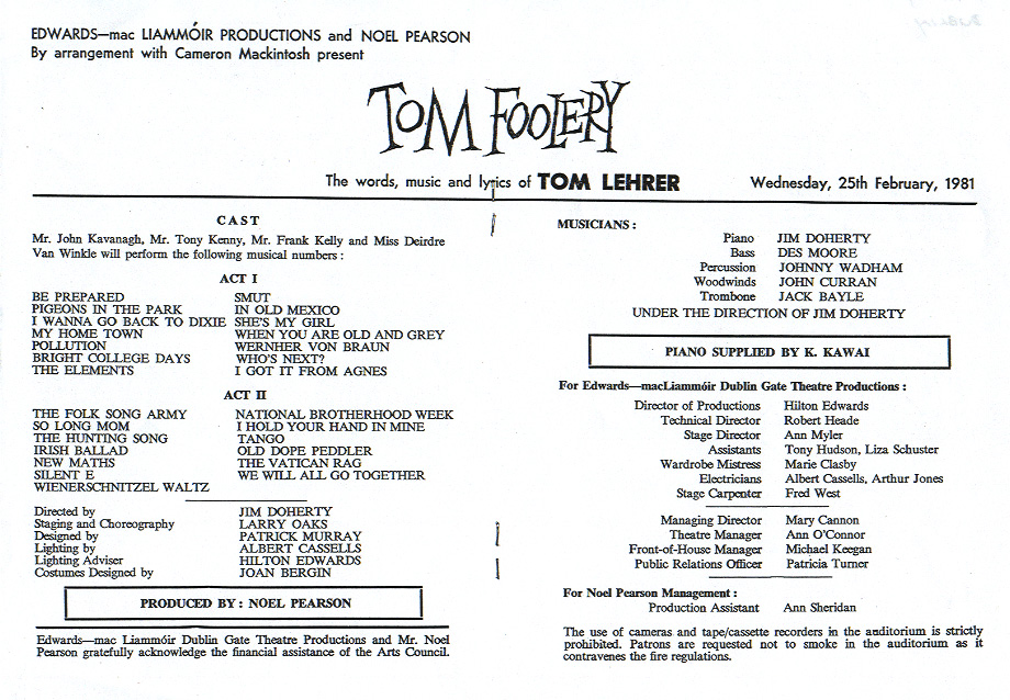 Gates Theater, Dublin. Feburary 1981