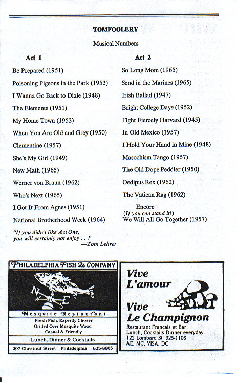 Walnut Street Theatre, Philedelphia, Feburary 8 - March 1 1986